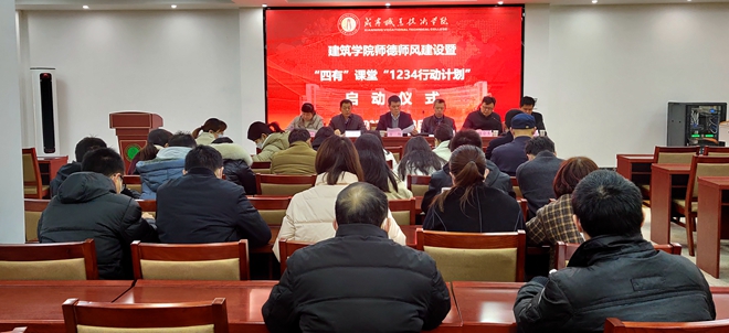 为切实解决“怎样上好一堂课”的关键问题,进一步创建优良教风学风,提高人才培养质量,助推“技能校园”建设,3月23日下午,建筑学院召开师德师风建设暨“四有”课堂“1234行动计划”启动大会。副校长方旭、质量管理处处长石裕勤、教务处副处长魏会生出席启动仪式,建筑学院院长曾学礼主持会议。