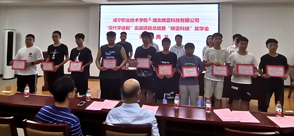 出席领导为获得表彰的同学颁发了荣誉证书。“现代学徒制”实战项目优秀学生代表蔡江益和“晓雲科技”奖学金获奖学生代表周游先后作交流发言。他们在发言中表示,学校和公司合作为同学们提供了良好学习平台,极大地锻炼提升了同学们的技术技能和综合素质,为同学们走向工作岗位、报效国家社会奠定了坚实基础。他们将心怀感恩,充满自信,再接再厉,争取更加优异的成绩。