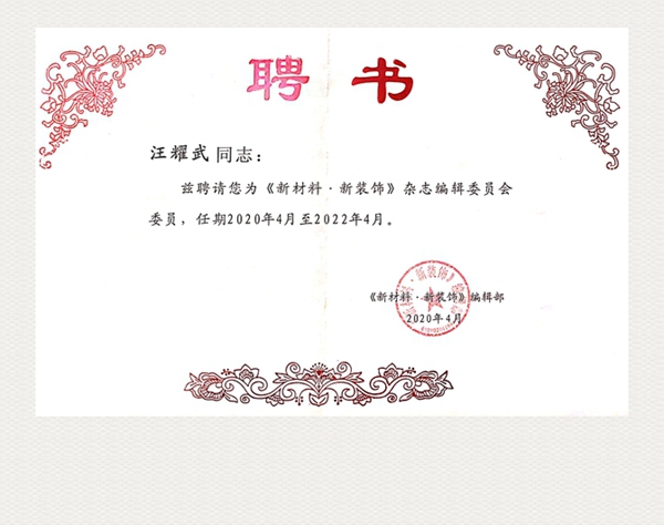 近日获悉,我校建筑学院汪耀武老师被《新材料·新装饰》编辑部正式聘请为编辑委员会委员。