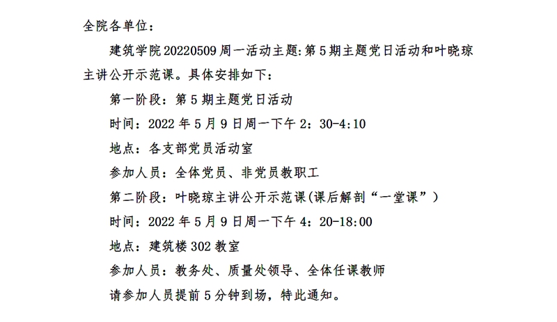 建筑学院关于开展 20220509 周一活动的通知