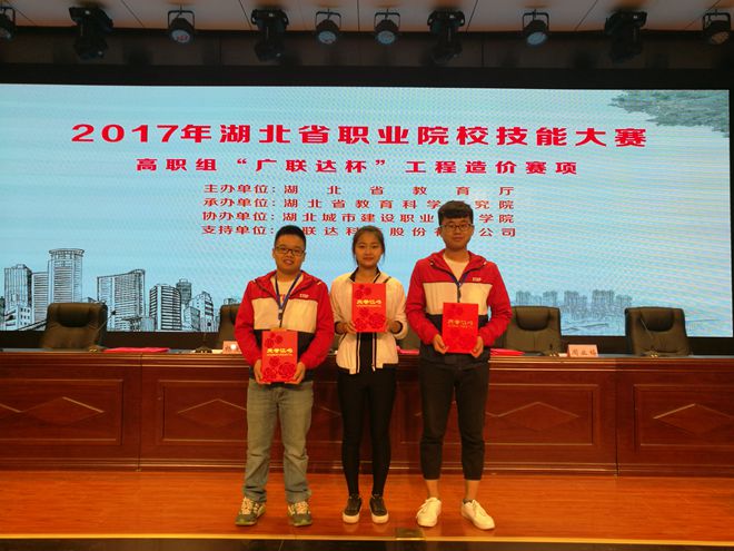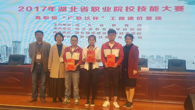 2017年11月4日,由湖北省教育厅主办的全省职业院校工程造价技能大赛,在湖北城市建设职业技术学院举行。建筑学院代文浩、向阳和蔺仕磊三名同学在建筑学院党总支书记黎八保和指导教师叶晓琼、易从艳的带领下,代表我校参加此次大赛并荣获团体一等奖好成绩,叶晓琼、易从艳被评为优秀指导教师。