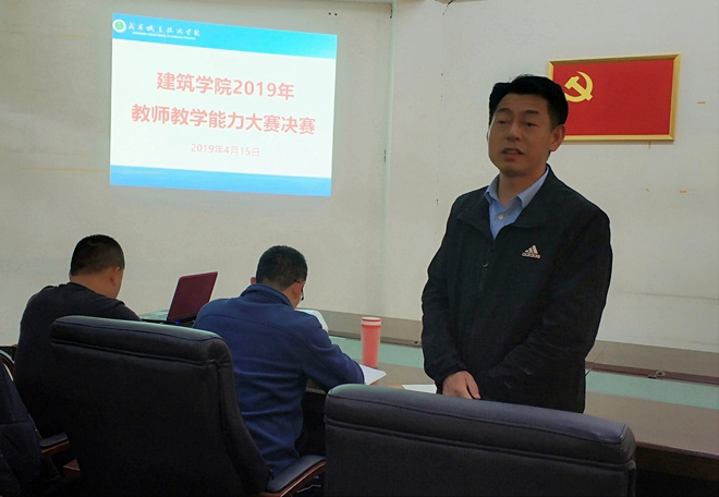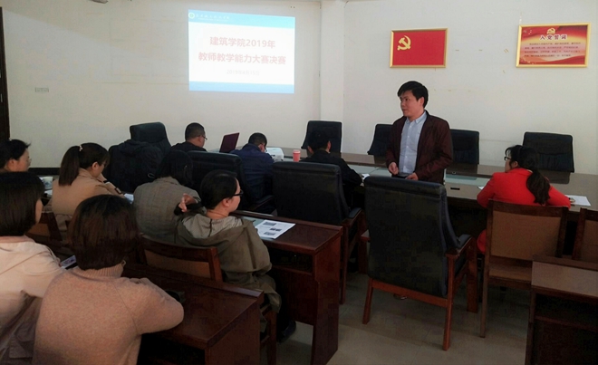 4月15日下午,建筑学院教师教学能力大赛决赛在建筑学院会议室成功举办。各教研室在初赛的基础上,选拔出7个参赛团队进入决赛,涵盖了教学设计、课堂教学、实训教学三类赛项。院长曾学礼、教学负责人汪耀武及教研室主任、优秀教师代表组成大赛评委会,全院无课教师全程观摩学习。