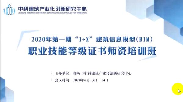 根据国务院《国家职业教育改革实施方案》、教育部等四部门《关于在院校实施“学历证书+若干职业技能等级证书”制度试点方案》,6月13-14日建筑学院BIM教师团队参加了中科建筑产业化创新研究中心举办的线上“1+X”建筑信息模型(BIM)职业技能等级证书师资培训班。培训班针对BIM职业技能等级证书初级、中级(四个方向)进行师资教学,能够帮助试点更好的推动BIM教学创新与改革。
