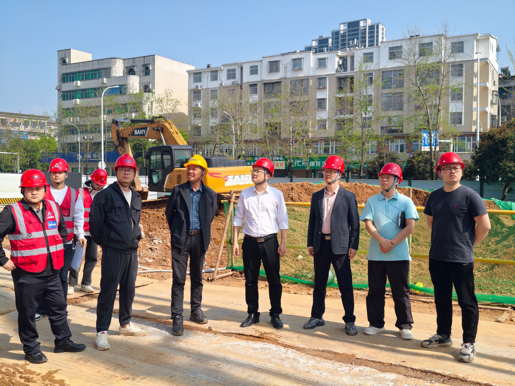 为推进党员干部下基层和校企联合党支部共建工作,深化产教融合,加强协同育人,2026年4月1日,咸宁职业技术学院建筑学院与咸宁市宁安建筑工程有限公司联合开展在建项目质量安全飞行检查活动。本次检查由公司副总经理陈斌与建筑学院副院长、联合党支部书记伍根共同带队,公司质安部人员、项目管理人员、学院教师代表及实习学生共同参与。检查组先后对咸安疾控中心危旧改项目、咸宁城乡智慧物流园建设项目、2024及2025年度旧改项目及咸安区城乡物流综合一体化建设项目(高桥物流站)进行实地检查,并看望实习生。