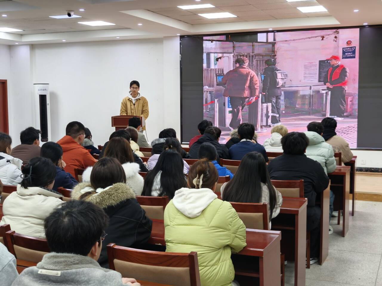 佘功明、汪馀斌等五位"寒假社会实践先进个人"依次登台,分享实践感悟。五个真实故事,五种青春风采,生动诠释了"把有限的生命投入到无限的为人民服务之中去"的雷锋精神时代内涵。